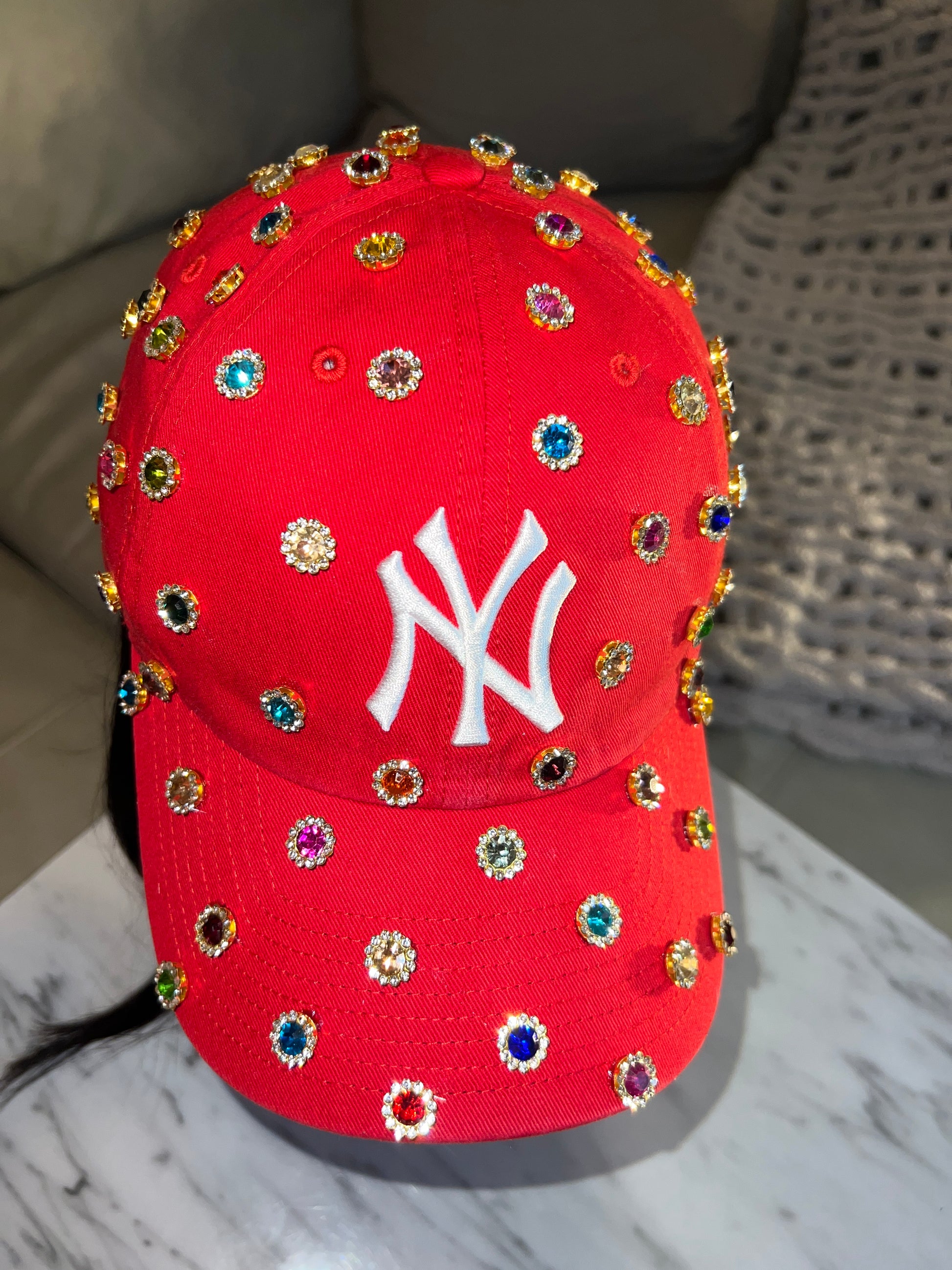 This Snap Back features rhinestone flatbacks, throughout the entire hat!